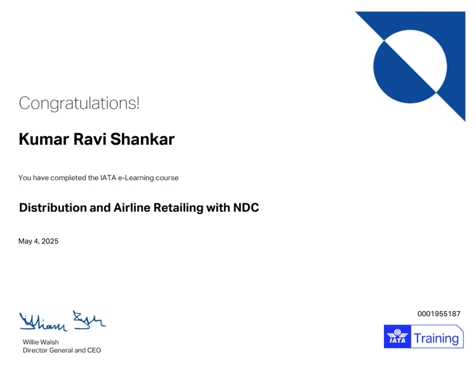 Hello! I’m Kumar Ravi Shankar, a SAFe-certified Product Owner/Product Manager with 10+ years in travel technology, airline ticketing, and e-commerce. IATA certified in Distribution and Airline Retailing with NDC. Strong expertise in airline fares, refund processing, ticket exchanges using ATC, and integration with GDS platforms like Amadeus and Sabre. Skilled in leveraging AI tools like ChatGPT, Gemini, and others to enhance delivery speed and efficiency. Proficient in NDC APIs, fare rule validations, BSPLink processes, and Agile delivery.
